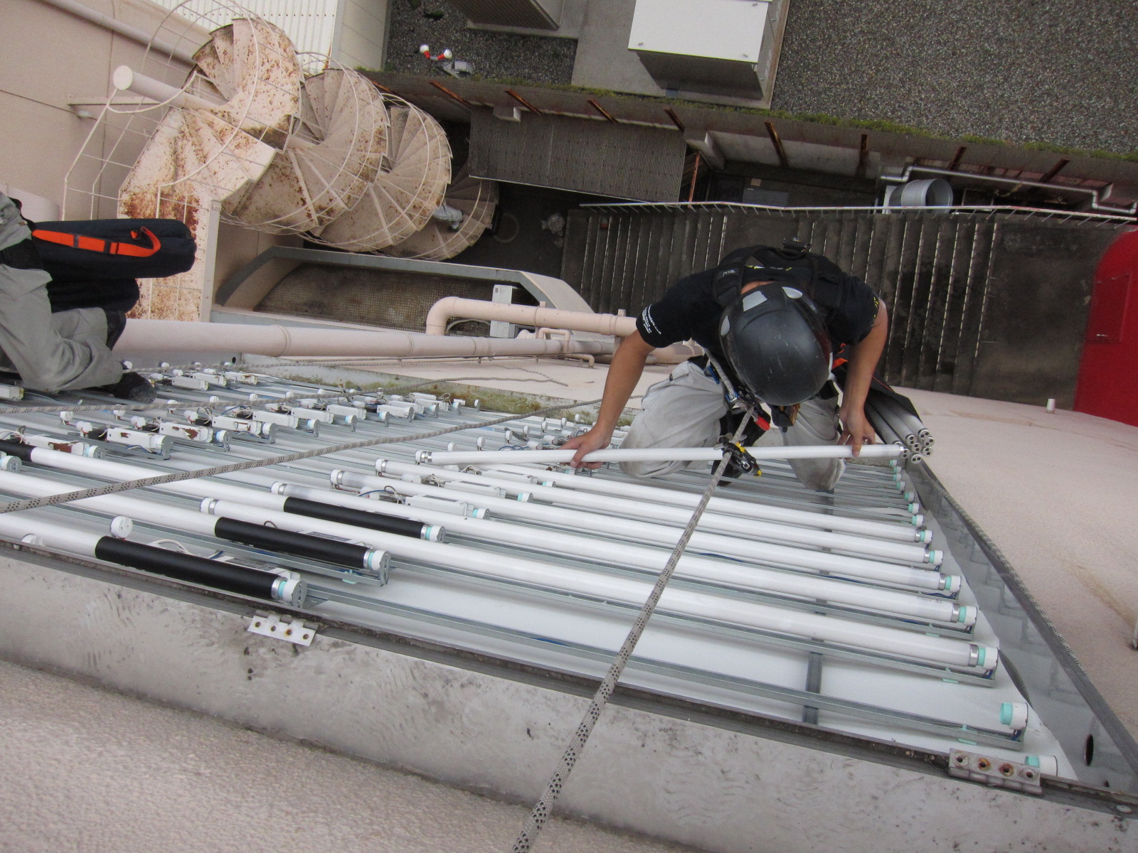 ロープを使用しての取付は作業員を同時に最適な場所に配置する事が可能です。